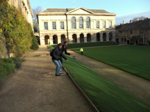 Before I arrived here, one of the first things I told people about my impending trip to Oxford was that students aren’t allowed to walk on the grass. Coming from Princeton, where as soon as the temperature gets above sixty-two it seems like the entire student body busts out bikinis and Frisbees and collectively flops on the lawn, this struck me as pretty amusing. I wasn’t entirely sure how serious Oxford was about this rule, though, until last week, when I was showing my parents around the Worcester Quad. I reminded my parents, as we walked by, that we weren’t allowed to step on the grass. My mom, joker that she is, responded by putting half of her foot on the lawn. The lawn must have sensors in it, because with a matter of seconds, one of the porters was approaching us, tut-tutting, and proceeded to sternly remind us that only fellows of the college may walk across the quad.