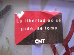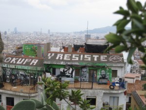 I will say, by way of introduction, that Barcelona is one of the most thoroughly mobilized cities I have ever seen. Catalonia is glorified as the only place in modern history anarchism has been tried on a large scale—during the Spanish Civil War, an experiment so successful both the fascists and the communists united against it—and that tradition is definitely still very strong. Barcelona’s general vibrancy seems to spill into its activism: just walking around the city for one week, I encountered three mass protests and countless infoshops and community centers. And—its impossible not to notice—Barcelona may well be the most thoroughly graffitied city in the world.
