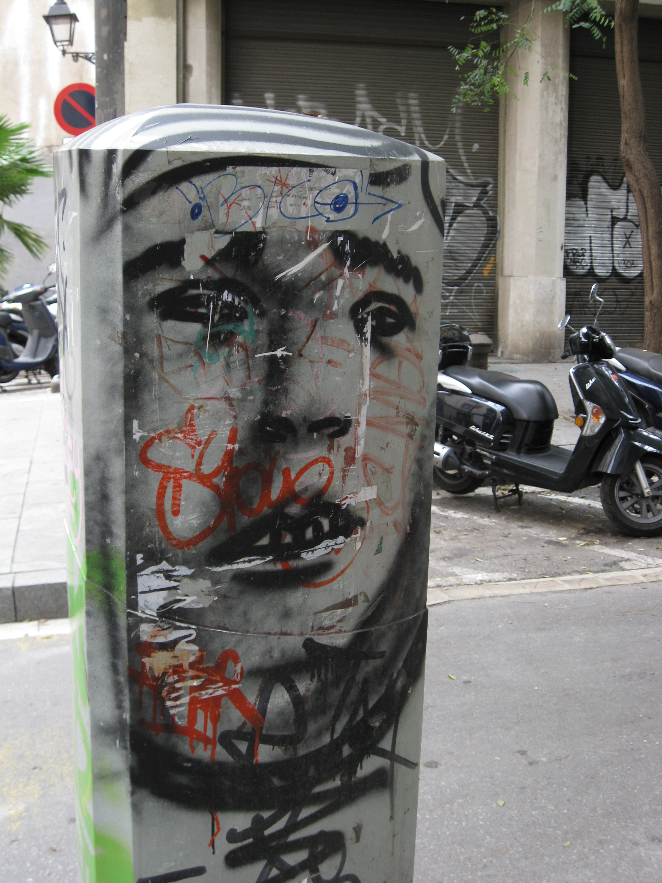 Which brings me back to Barcelona. Our apartment was situated in the city’s old gothic quarter, and we spent our first day there—a Sunday, when everything else was closed—getting lost in the narrow, zig-zagging streets. There was graffiti all around us, and it was fantastic. Not just tags and bubble letters, but whole colorful scenes and portraits, with various inscrutable motifs appearing in different places.