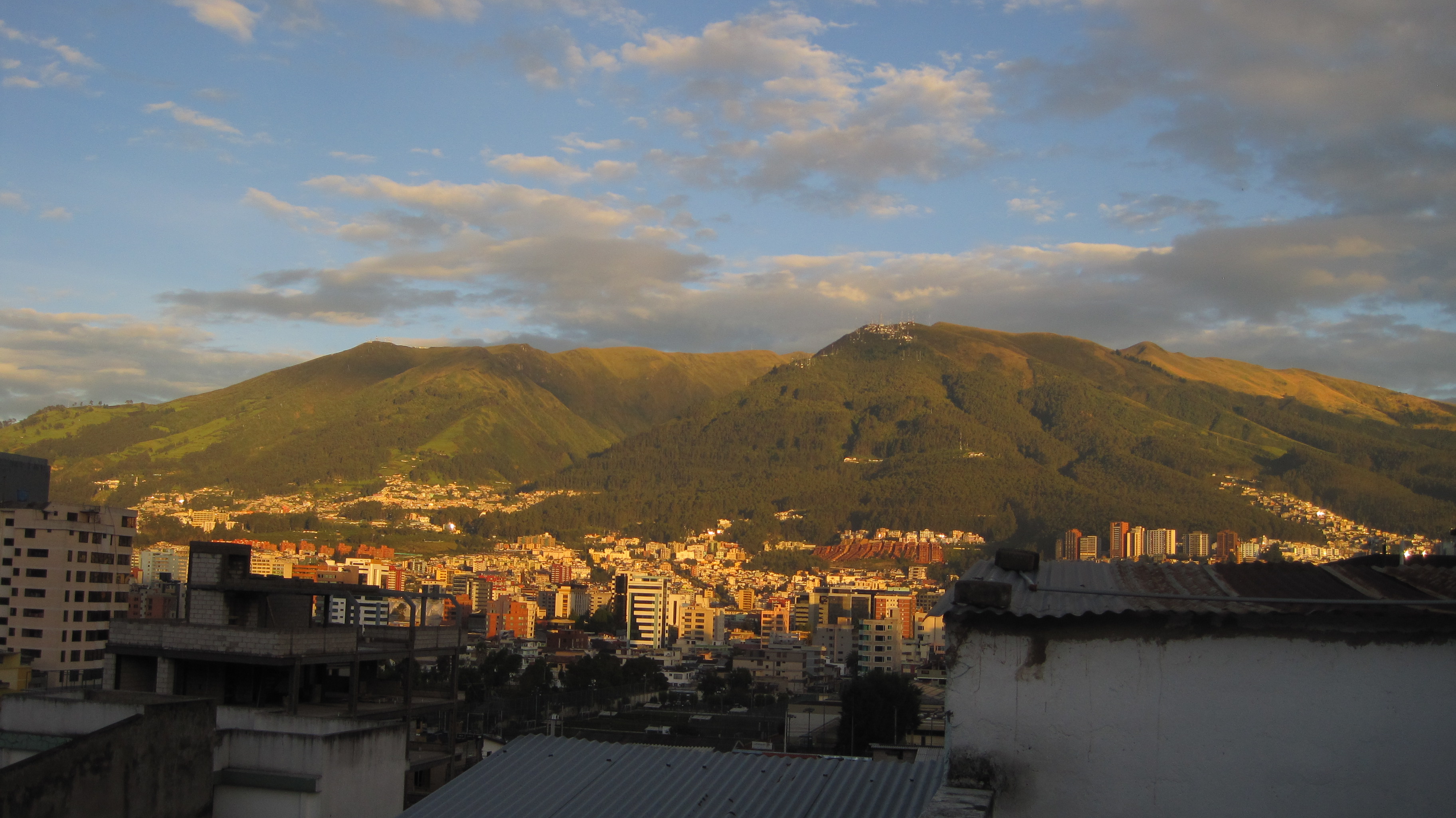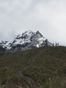 After a night that left me blissfully filled with knowledge of the latest marching band drama, we woke up this morning and headed to the Teleferiqo, a sweet trolly to the top of one of the mountains that looms over Quito. My utter inability to catch my breath or walk a quarter mile without stopping was a big reminder that this was the highest altitude I’ve ever ascended to, at least outside of a pressurized cabin. Like most places, Quito looks a bit better from a distance, but what was really fantastic was gazing out to snow-capped peaks and the sierra, criss crossed with rivers and farms and pueblos. While the spectacular view itself made the whole thing vale la pena, it didn’t particularly hurt that, on our cable car down, I sat next to one of the chief negotiators of the Yasuní-ITT protocol, and scored his e-mail address.