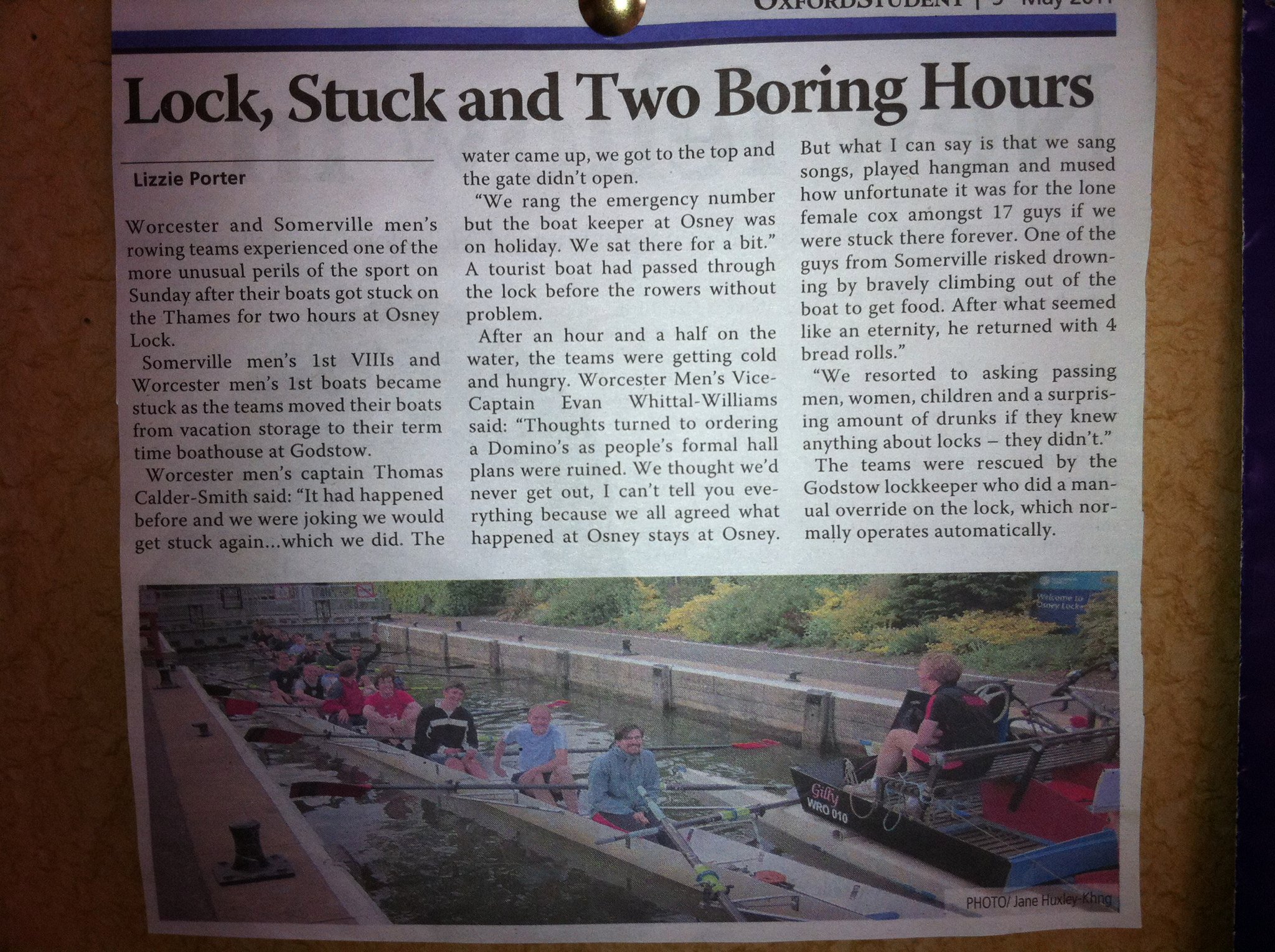 Finally, I can leave Oxford knowing that, although I may leave England in body, I will live on in spirit. Yes, the great deeds of Worcester College Boat Club have been immortalized in the Oxford Student newspaper.